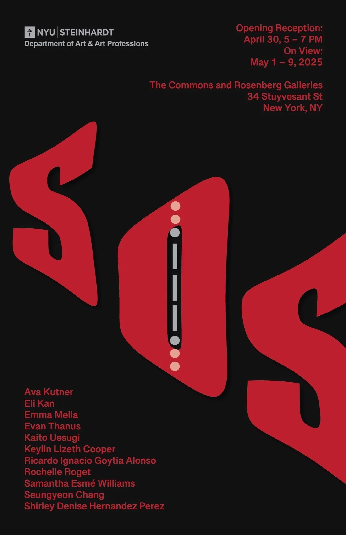 As part of the collaboratively curated and developed group art show, entitled SOS, that comprised my BFA senior thesis at NYU, I developed a graphic identity that manifested in a promotional poster and double-sided postcard.